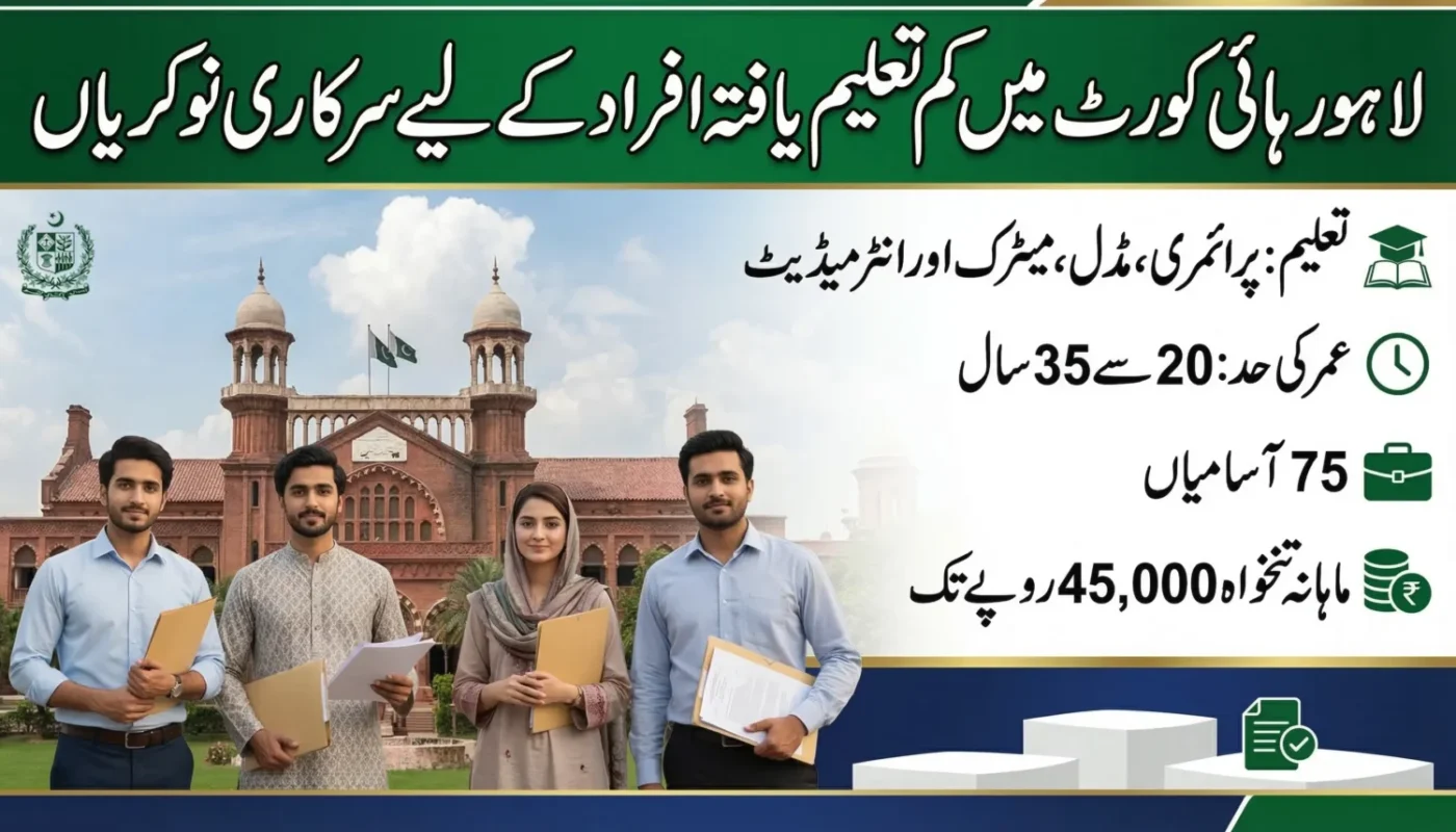 The latest vacancies announced by the Lahore High Court offer an excellent opportunity for individuals seeking government jobs in Punjab. With 75 positions available, candidates with primary or middle education can apply and secure employment in a reputable judicial institution.