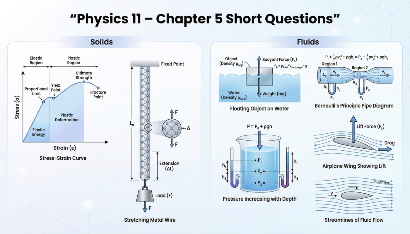Physics Class 11 Chapter 5 Short Questions – Solid and Fluid Dynamics (Solved)
